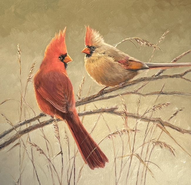 A Gentle Bond - Northern Cardinals - 12" x 12" - Oil on panel - $3,750.